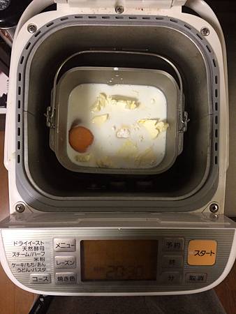 1. 除了酵母粉, 把所有麵團材料放入麵包機 , (酵母粉 放在酵母粉專用口)