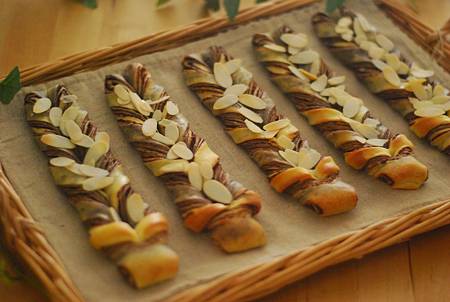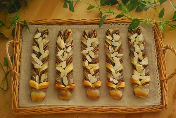 17. 塗上牛奶 再將杏仁片灑在麵包中間